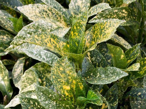 Tento vždyzelený ker dorastá do výšky jedného až dvoch metrov a rozkonáruje sa tesne nad zemou. Jeho ozdobou sú asi desať centimetrov dlhé, podlhovasto oválne listy, ktoré sú na okraji zúbkované. Sú lesklé, tmavozelené a majú rôznu žltú mramorovú kresbu.