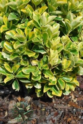 V porovaní so základným druhom rastie pomaly. Bršlenu japonskému rastú konáre vzpriamene dohora. Vysokou okrasnou hodnotou bršlenu japonského sú jeho listy, ktoré sú strakaté, na okrajoch vrúbkované a obrúbované lesklou tmavozelenou farbou a v strede žiarivou zlatožltou farbou.