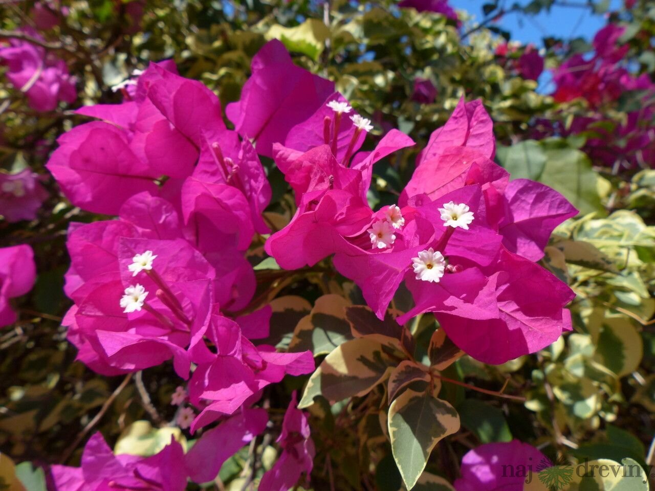 Kvitne v lete malými kvietkami bielej farby. Oveľa nápadnejšie sú jej farebné listene, ktoré ich obklopujú a objavujú sa v etapách.