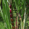 Jedná sa o mohutné trávy, kde z mohutného podzemku vyrastajúhladké 2 - 9 m vysoké a 2 - 5 cm široké steblá obsahujúce bielu, sladkú dreň. Steblo môže mať rôznu farbu od zelenej, cez žltú až po fialovú ba dokonca čiernu. Vo všeobecnosti sú odrody s farebnou stonkou odolnejšie voči chladu.Steblá sú kolienkaté, z každého kolienka vyrastá list (čepeľ dlhá až 2 metre). Spodné listy zasychajú a ostáva len výrazné kolienko. Listy sú len vo vyššej časti rastliny. Na vrchole vyrastá latovité kvetenstvo, ktoré sa však vytvára len vzácne a potom rastlina hynie. Plodom je oválne k obidvom koncom zašpicatené zrno.