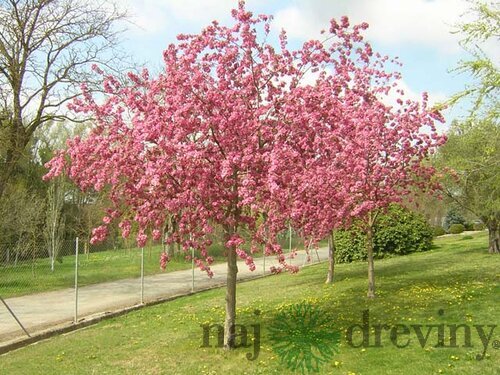Dorastá do výšky maximálne 8 metrov. Výhonky tejto jablone trocha prevísajú. Kvety po rozkvitnutí majú intenzívnu ružovú farbu, ale keď sú ešte v puku majú tmavo karmínovo červenú farbu. Jej plody sú malé červené jabĺčka.