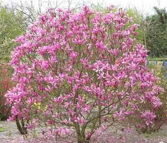 Pomerne vysoký ker s hustými konármi dosahujúci výšku 1,5-2 metre. Kvitne v apríli až v máji , má fialovoružové kvety. Tento typ magnólii je celkom obľúbený kvôli malým nárokom na priestor. Vhodné je vysádzanie v záhradách a hodí sa aj ako solitér. Preferuje vlhkú a kyslú pôdu bohatú na živiny. Má rada slnečné a polotienisté miesta.