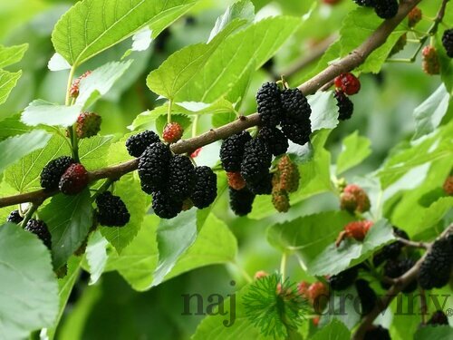 Moruša čierna je opadavý strom, ktorý dorastá do výšky 12m a do šírky 15m. Jej koruna je guľatá. Moruša sa po 100-120 rokoch pod váhou bočných konárov často rozpraskne, niekedy aj po celej dĺžke kmeňa. Listy sú dlhé 10 až 20 cm a 6 až 10 cm široké, mäkké na spodnej strane, horná strana listov má kratučké pevné chĺpky. Plody moruše sú jedlé, tmavofialovej až čiernej farby, keď už sú zrelé.