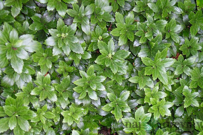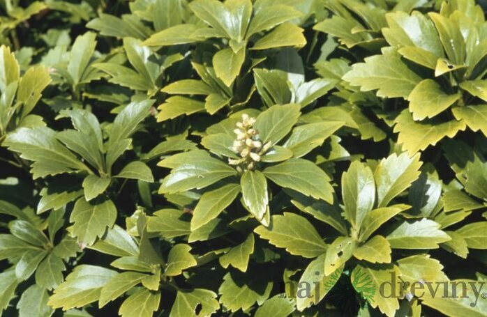 Pachysandra je atraktívna trvalka najmä kvôli svojim lesklým listom sýto zelenej farby. Na jar kvitne nenápadnými bielymi kvetmi.