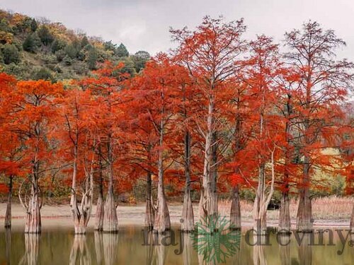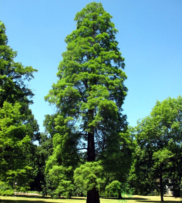 Tisovec dvojradý je veľký opadavý ihličnatý strom, ktorý má hnedú kôru s dlhými vláknitými vrstvami. Konáriky má veľmi tenké, ploché, zelené a opadavé. Ihličie má veľmi jemné, mäkké a husto usporiadané na konárikoch, čo im dodáva perovitý vzhľad. Je dlhé iba 1-2cm, bledozelenej farby a zostáva pripojené k najmenším konárikom, ktoré v neskorej jeseni opadávajú. V tom čase ihličie mení sfarbenie na nádherné červeno-oranžové.