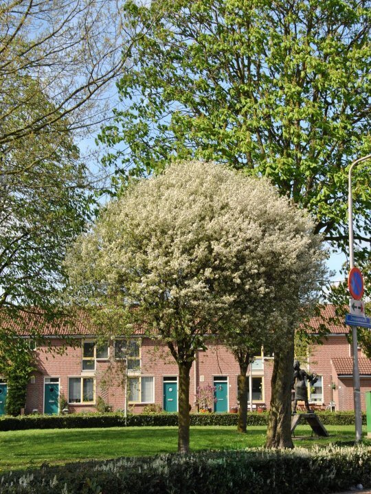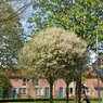 Višňa okrasná má súmerný a pravidelne guľovitý tvar a je ideálna do malých záhrad. Má listy, ktoré sa na strome objavujú v apríli až v máji, sú oválne, lesklej tmavozelenej farby a má biele kvety.