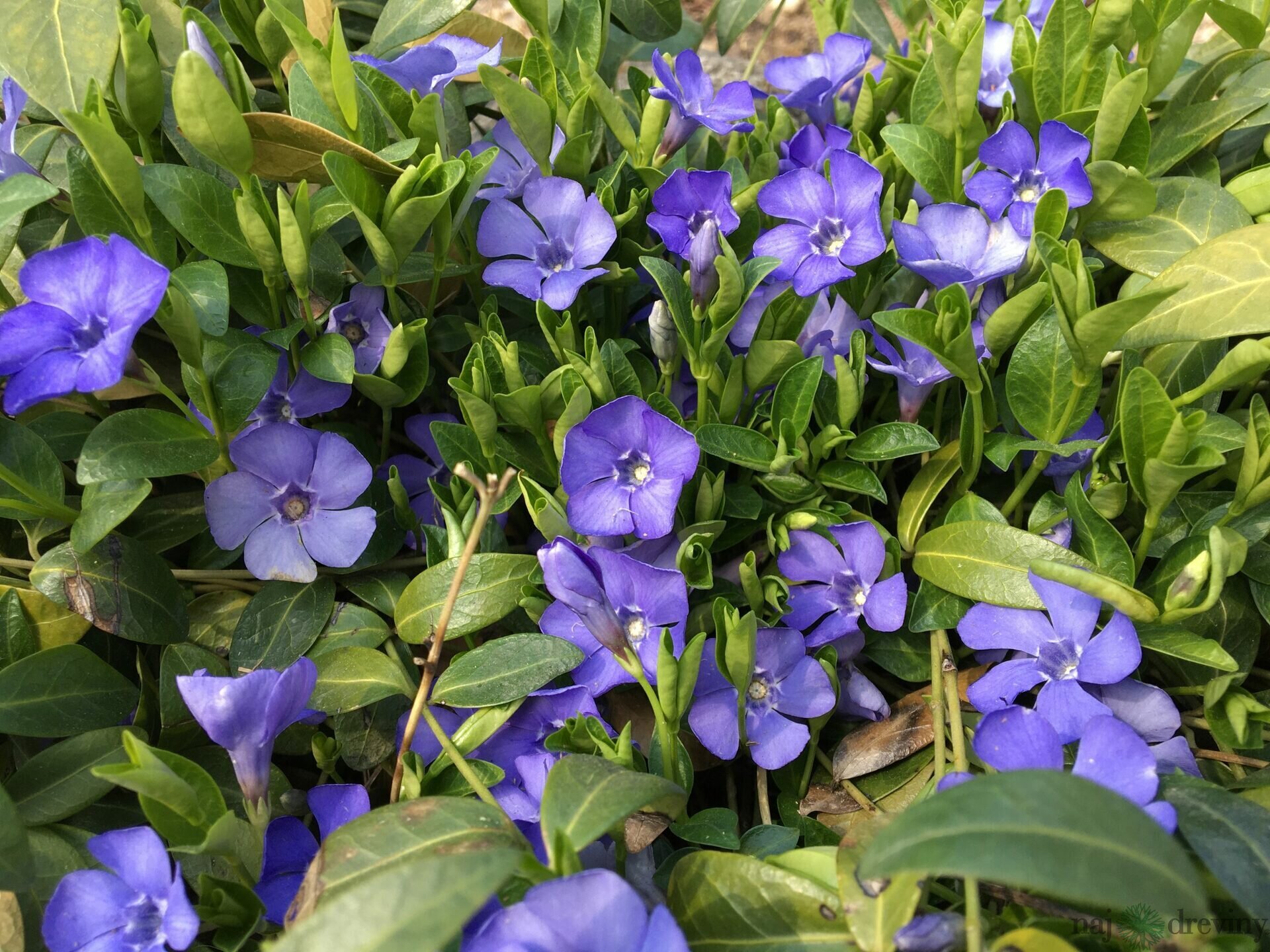Zimozeleň menšia je trváca bylina dorastajúca do veľkosti od15 do 60 cm. Má plazivé až poliehavé sterilné byle, ktoré na báze drevnatejú apri dotyku s pôdou zakoreňujú. Kvety sú jednotlivé vyrastajúce z pazúch listov. Bývajúmodrej alebo fialovo ružovej farby a zriedkavejšie aj biele.