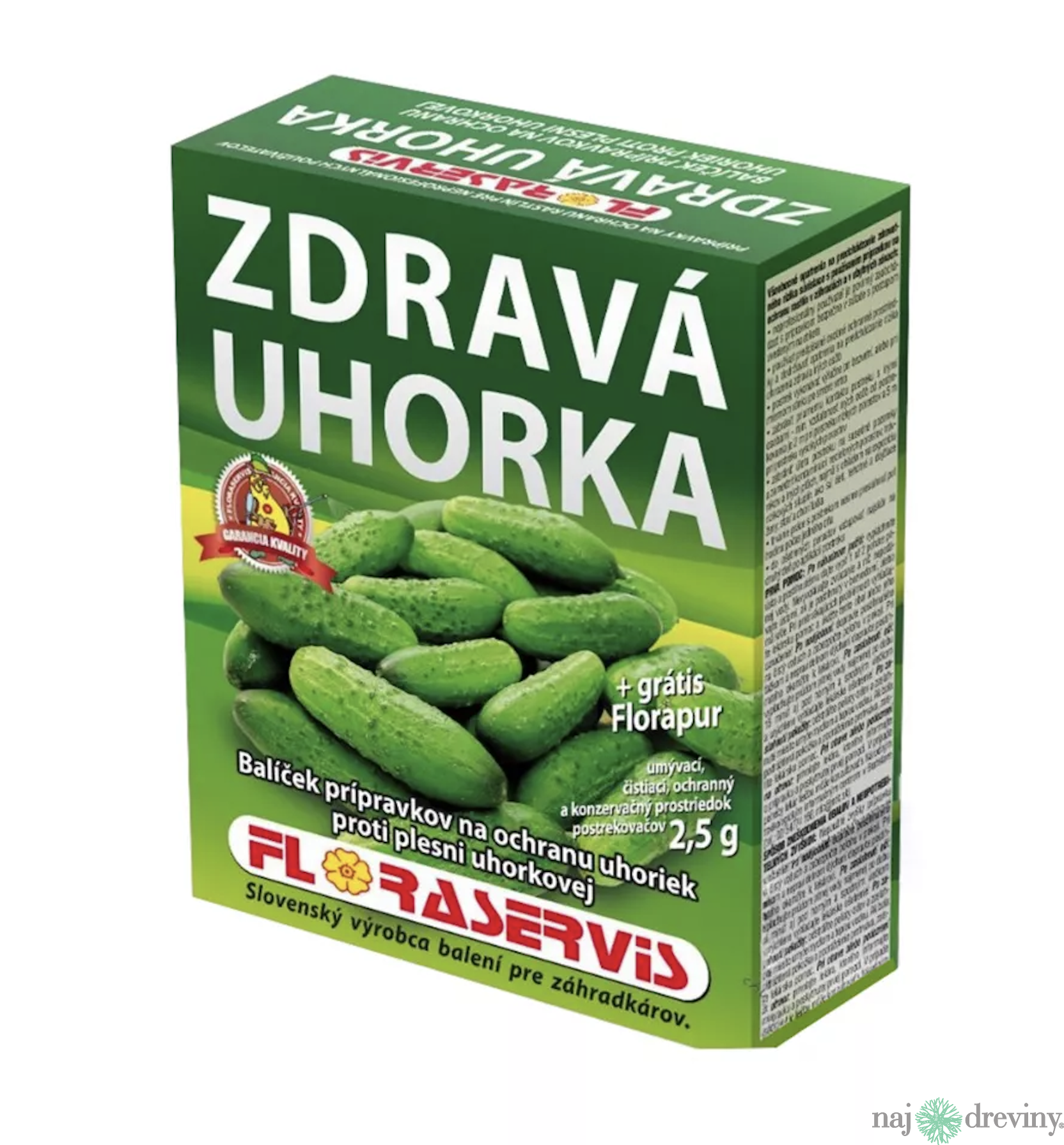 Balíček prípravkov na celoročnú ochranu uhoriek proti plesni uhorkovej.Balíček obsahuje štyri rôzne druhy prípravkov na ochranu rastlín určených proti plesni uhorkovej na uhorkách. Prípravky sú nadávkované v štyroch samostatných vreckách označených podľa poradia použitia pre štyri postreky počas sezóny.Na obale nájdete presné inštrukcie a návod na použitie a aplikáciu, podľa označenia sáčkov.Veľmi jednoduché a ľahké použitie aj pre začiatočníka, alebo laika.Prípravky aplikujte samostatne v poradí podľa označenia na vreckách (1,2,3,4) po zistení prvých príznakov plesne uhorkovej na uhorkách. Jednotlivé balenia prípravkov obsahujú množstvo prípravku na prípravu 3 litrov postrekovej kvapaliny. Intervaly medzi jednotlivými ošetreniami voľte podľa priebehu počasia. Za príliš daždivého počasia v intervale 7-10 dní, za suchého počasia v intervale 14 dní.V balíčku nájdete zdarma prípravok FLORAPUR určený na umývanie, čistenie, ochranu a konzerváciu postrekovačov.1. Postrek (balíček č. 1) Champion 50 WP obsah: 6g na 3 litre vody ochranná doba 7 dní (šalátové uhorky) a 3 dni (nakladačky) aplikácia: prvý preventívny postrek v polovici júna viac o prípravku Champion 50 WP 2. Postrek (balíček č. 2) Aliette 80 WDG obsah: 6g na 3 litre vody ochranná doba 3 dni aplikácia: druhý preventívny postrek o 7 až 10 dni od prvého postreku v prípade daždivého počasia alebo 14 dní za suchého počasia viac o prípravku Aliette 80 WDG 3. Postrek (balíček č. 3) Champion 50 WP obsah: 6g na 3 litre vody ochranná doba 7 dní (šalátové uhorky) a 3 dni (nakladačky) aplikácia: tretí preventívny postrek o 7 až 10 dni od druhého postreku v prípade daždivého počasia alebo 14 dní za suchého počasia viac o prípravku Champion 50 WP 4. Postrek (balíček č. 4) Aliette 80 WDG obsah: 6g na 3 litre vody ochranná doba 3 dni aplikácia: štvrtý preventívny postrek po 10 až 14 dňoch od tretieho postreku viac o prípravku Aliette 80 WDGPoužívajte prípravky na ochranu rastlín bezpečným spôsobom. Pred použitím si vždy prečítajte etiketu a informácie o prípravku.