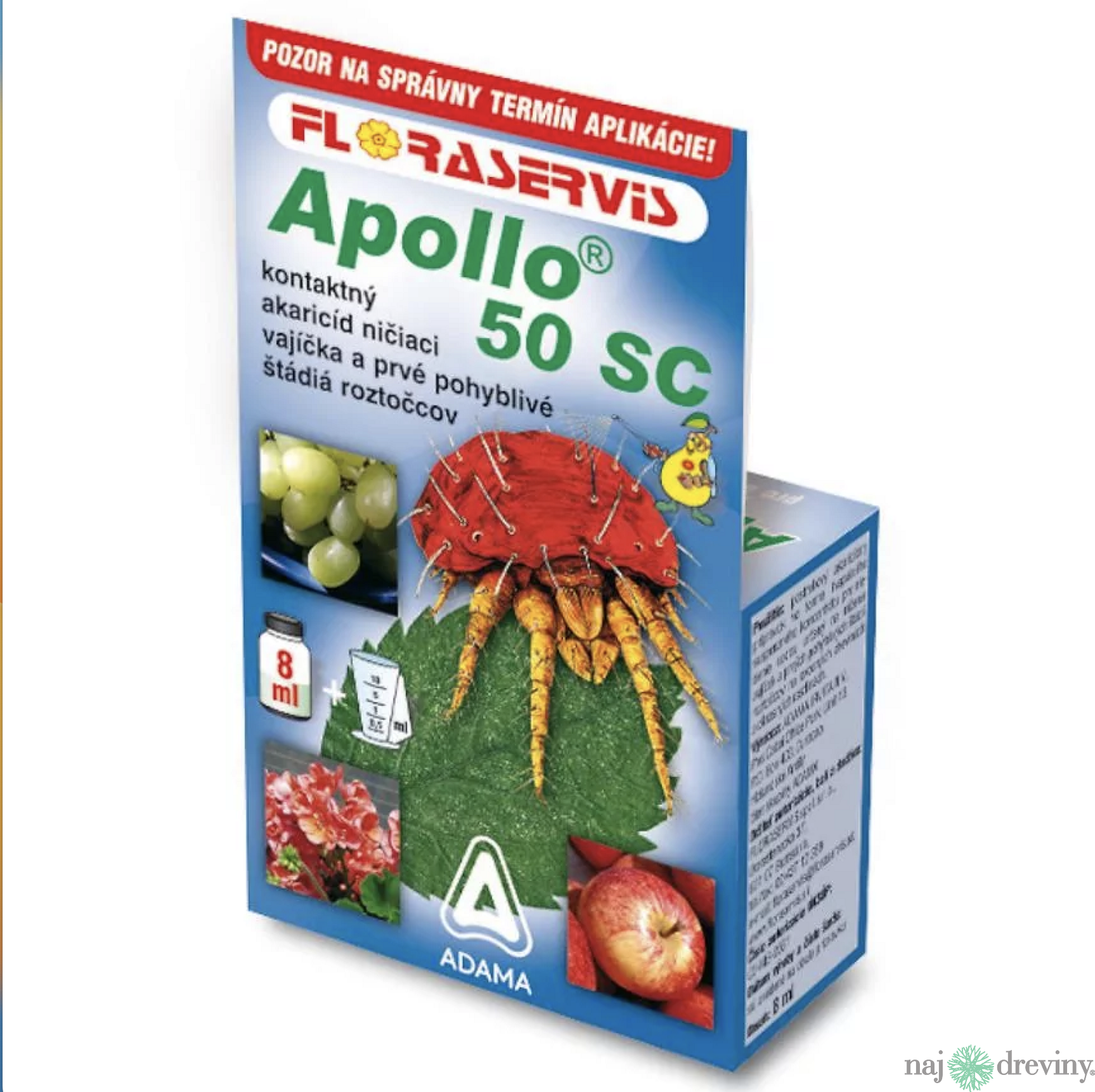 Agrovitalu, čo predlžuje ochranné krytie a eliminuje vplyvy počasia. Prípravok Apollo je miešateľný s väčšinou bežne používaných insekticídov, fungicídov a emulgovateľných olejov. Nie je miešateľný s Bordóskou a sírovápennou zmiešaninou. UPOZORNENIE: Opakované používanie akaricídov s rovnakým mechanizmom účinku môže viesť k rozvoju rezistentnej populácie roztočcov. K zabráneniu, alebo oddialeniu vývoja rezistencie doporučujeme používať prípravok Apollo nasledujúcim spôsobom: OVOCNÉ DREVINY: Počas jednej vegetačnej sezóny aplikujte na tom istom pozemku prípravok obsahujúci účinnú látku clofentezine, hexythiazox, flufenoxuron, či iný akaricíd zo skupiny acylomočovín, najviac jedenkrát za sezónu. VINIČ HROZNORODÝ: Prípravok Apollo aplikujte najviac jeden krát počas jednej vegetačnej sezóny a to len na začiatku, alebo najneskôr v strede sezóny. OKRASNÉ RASTLINY: Prípravok Apollo používajte maximálne dvakrát počas jednej vegetačnej sezóny, nie však tesne za sebou. Ošetrenie je nutné striedať s inými prípravkami. Ošetrenie drevín robte formou vysoko objemového postreku pri použití 10-20 litrov vody na 100m
