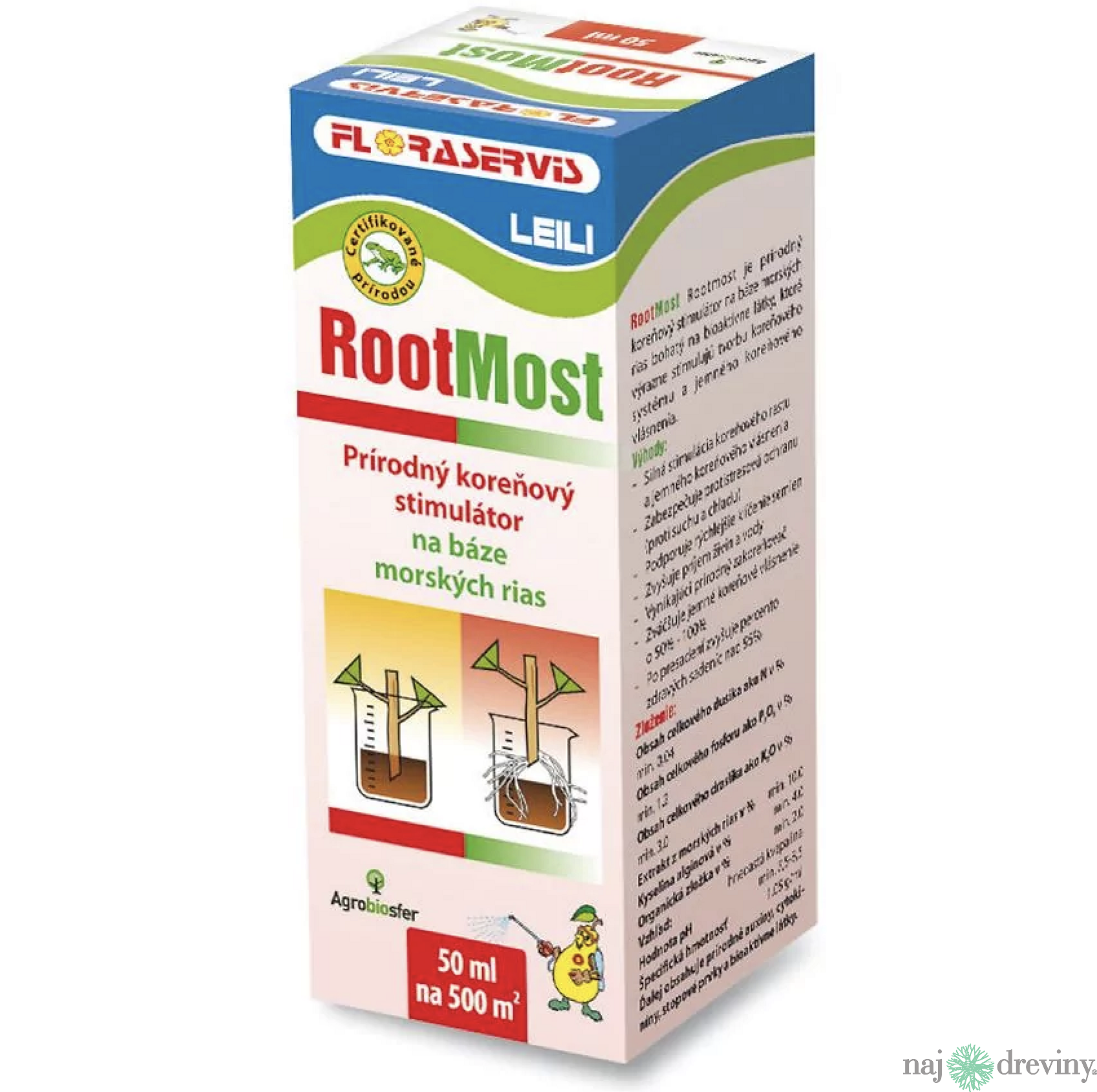 Popis RootMost je prírodný koreňový stimulátor na báze morských rias bohatý na bioaktívne látky, ktoré výrazne podporujujú tvorbu koreňového systému a jemného koreňového vlásnenia. Chemické zloženie Dusík celkovo 0,04% Fosfor 1,2% Draslík 3% Extrakt z mořských řas 10% Kyselina algínova 4% Auxiny (IAA) 1000 ppm Hodnota pH 7,5-8,5 Výhody Silná stimulácia koreňového rastu a jemného koreňového vlásnenia Zväčšuje jemné koreňové vlásnenie o 50% - 100% Zvyšuje príjem dôležitých živín a vody Zvyšuje odolnosť rastlín voči stresovým faktorom Podporuje skoršie klíčenie semien Po presadení zvyšuje percento zdravých sadeníc nad 95% Vynikajúci zakoreňovač Prírodný prípravok je šetrný k životnému prostrediu Aplikácia Vhodné najmä pre repku, kukuricu, slnečnicu, priesady, trávniky a i. Postrek na listy: Aplikujte v dávke 0,5–1 l/ha v intervale 7-10 dní Kvapková závlaha: Aplikujte 2 - 3 krát v dávke 2–4 l/ha v intervale 10–15 dní Morenie osiva: 1-2 l/t osiva Dávka vody: Min. 100 l/ha Používajte prípravok na ochranu rastlín bezpečným spôsobom. Pred použitím si vždy prečítajte etiketu a informácie o prípravku.