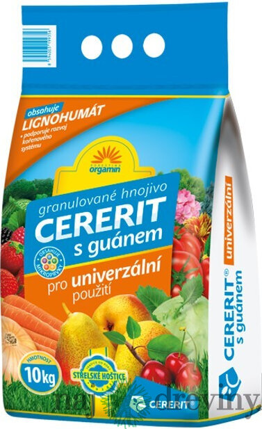 Cererit s guánom na zemiaky je organominerálne granulované hnojivo so stopovými prvkami, určené na výživu zemiakov. Hnojivo obsahuje Lignohumát na podporu koreňového systému a Guáno čisto prírodnú surovinu, ktorá vzniká mineralizáciou vtáčieho trusu na pobrežiach Južnej Ameriky. Hnojivo napomáha rýchlejšiemu rastu a bohatšej úrode. Zloženie: 5 % N + 6,5 % P2O5 + 15 % K2O