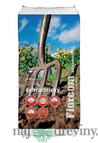 Florcom záhradnícky substrát 50 l je kvalitný substrát z vybraných svetlých a tmavých rašelin, obohatený o základné živiny, stopové prvky a prírodný humus. Má upravené pH, vysokú nasiakavosť vody a dlhodobo stálu štruktúru. Vhodný na výsadbu črepníkových a balkónových rastlín, okrasných drevín či na zlepšenie pôdy v záhone. Nie je určený na výsevy ani pre rastliny citlivé na soli.
