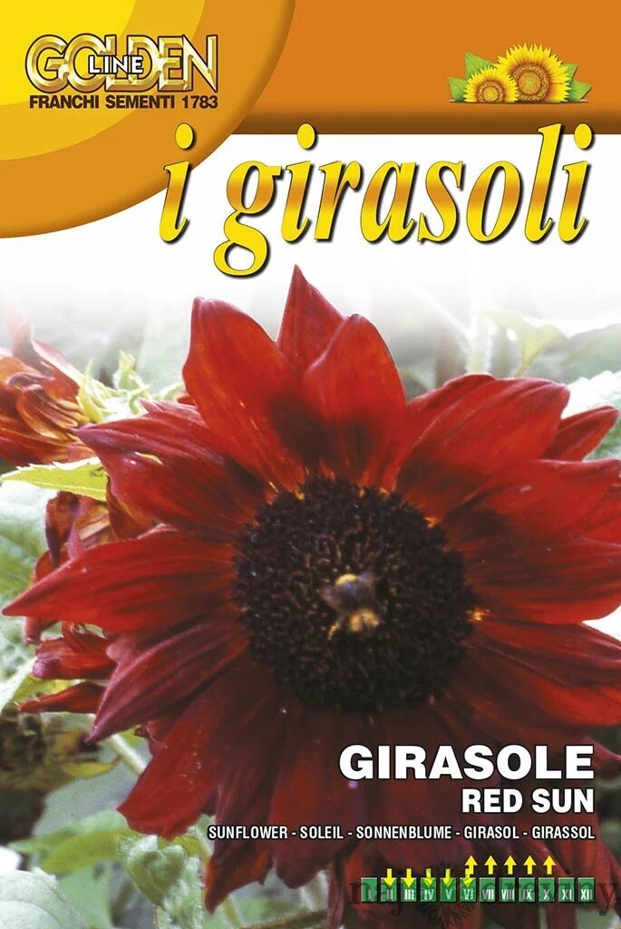 Slnečnica – RED SUN je jednoročná odroda. Vzpriamená rastlina, ktorá produkuje veľké kvety, so stredne veľkým čiernym stredom a tmavočervenými lístkami. Výborne sa hodí do kvetinových záhonov umiestnených na priamom slnku, ale aj do rezaných kytíc. Dosahuje výšku približne 160 cm. Výsev: II – VI Zber: VI – X GLGI 329/6 Gramáž: 3g