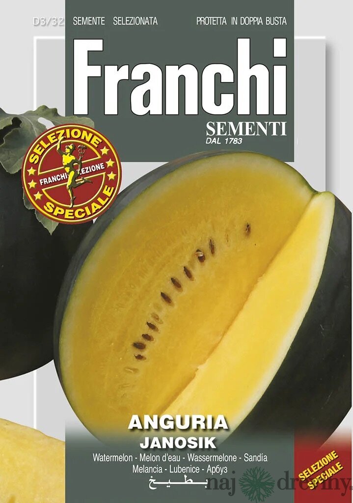 Melón vodný – JANOSIK F1 je skorá energická, bujne rodiaca odroda. Plody sú okrúhle s tenkou zelenou šupou. Intenzívne žltá dužina má charakteristickú sladkú, jemnú chuť. Výsev: II – VI Zber: VII – IX Gramáž: 2,5g