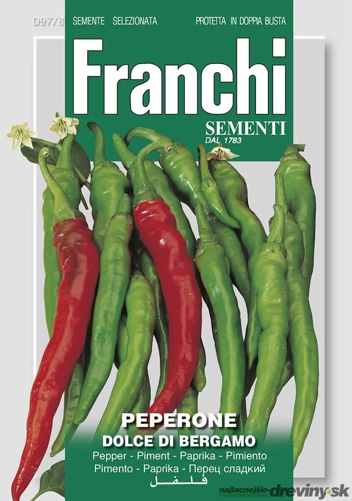 Stredne skorá odroda. Je to rastlina vysoká, energická, s dobrou produkciou. Jej plody sú dlhé, tenké, so špicatými koncami, sladkej chuti a zelenej farby, ktorá sa pri úplnom dozretí plodov mení na červenú. Výsev: II – V Zber: VII – X Gramáž: 2g