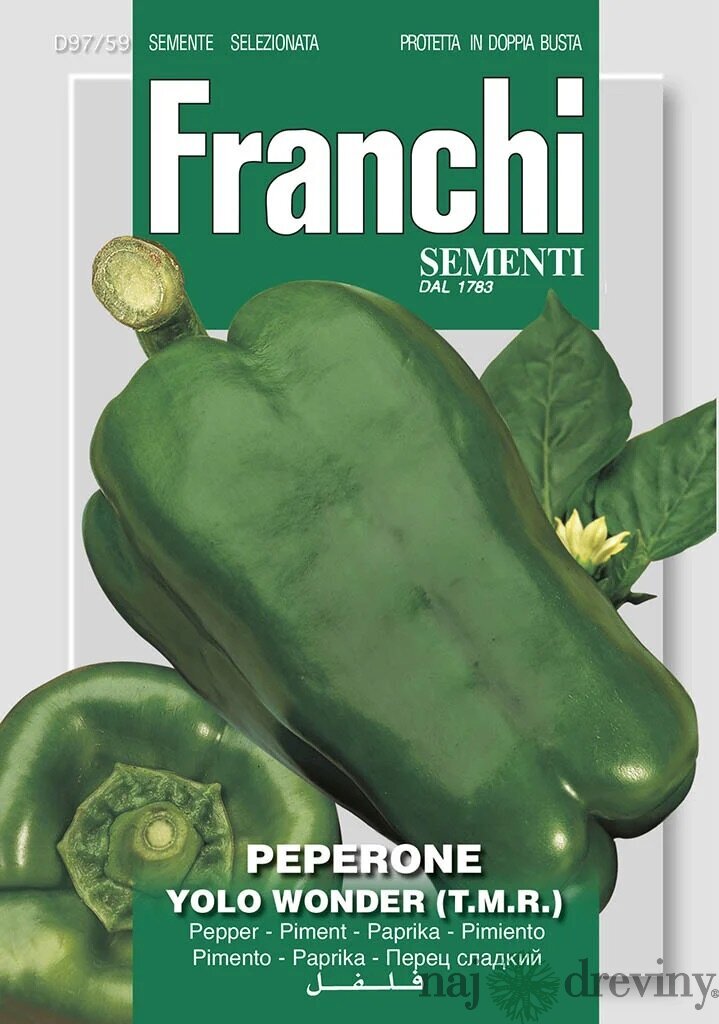 Paprika – YOLO WONDER – semená, 2 gr. Stredne skorá odroda. Rastlina je mohutná, dobre rozvetvená a s dobrým výnosom. Produkuje 4 dlhé, mäsité,sladké laloky, ktoré sú intenzívne zelené a v plnej zrelosti červené. Dužina je sladká a konzistentná. Stredne skorá sladká odroda zelenej papriky, ktorá produkuje veľké, mäsité sladké 3 až 4 laločné papriky. Ideálne na použitie do šalátov, na pečenie, grilovanie alebo plnenie. Paprike sa darí až po oteplení, najlepšie pre skleníky, fóliovníky – 8 týždňov od presadenia do pôdy. Výsev: II – V Zber: VII – X Gramáž: 2 gr.