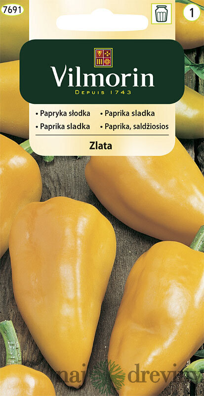 Zlata je poloskorá odroda papriky (Capsicum annuum) pre poľné pestovanie. Plody sú mäsité, oválne. Zbierajú sa žlté, majú potom sladkú chuť a krásne voňajú. Pestovanie: Darí sa jej v úrodnej, teplej pôde, bohatej na humus, na slnečnom mieste. Výsev v polovici marca v miestnosti s teplotou 22 – 25 °C. Pikýrovať do kvetináčov. Výsadba do pôdy od polovice mája do začiatku júna. Použitie: Na priamu spotrebu. Výsev (skleník): marec – apríl. Výsadba (záhon): máj – jún. Vzdialenosť: 40 x 40 cm. Úroda: júl – september. Cenová skupina: 1