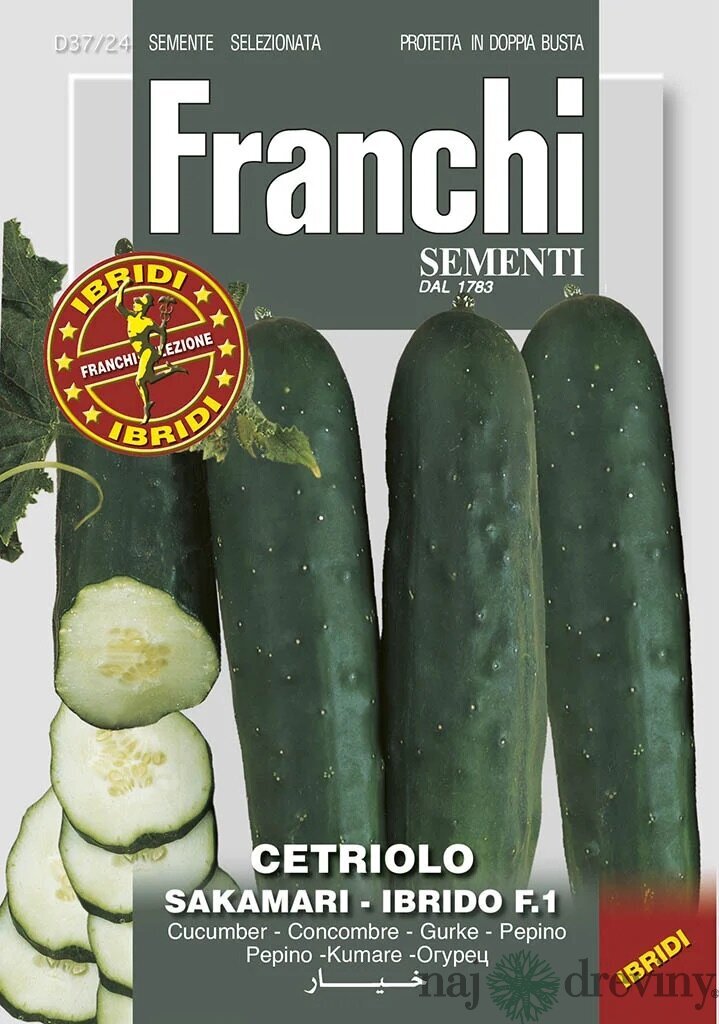 Uhorka šalátová – SAKAMARI F1 – semená Stredne skorá odroda. Bujne rastúca rastlina s vynikajúcou produkciou, s hustým lístím a valcovitými plodmi tmavozelenej farby s veľmi malým tŕním, s intenzívnou chuťou. Výsev: III – VII Zber: VI – X Gramáž: 1,5g