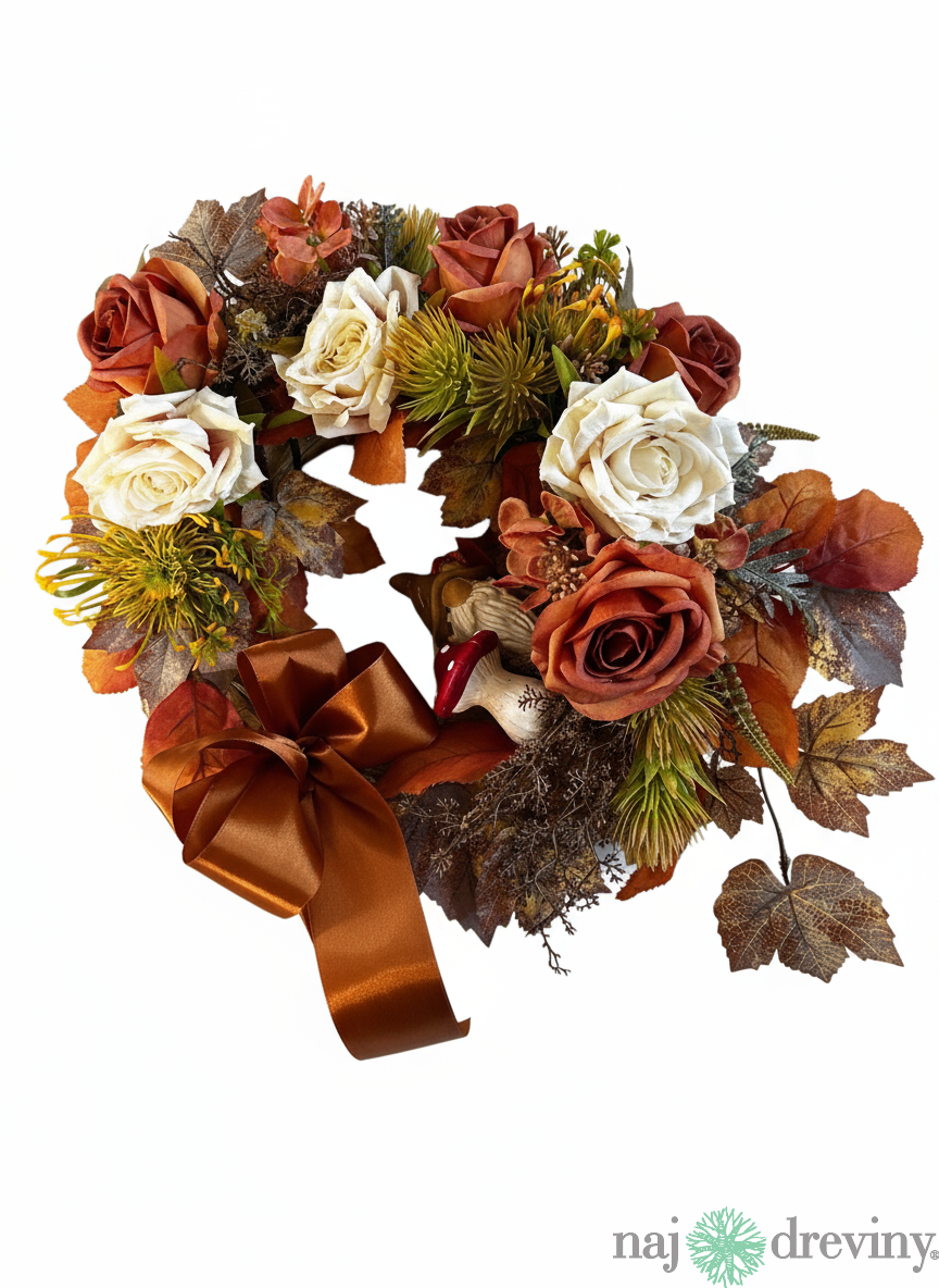 Veniec Jesenná spomienka - ružami a hubou