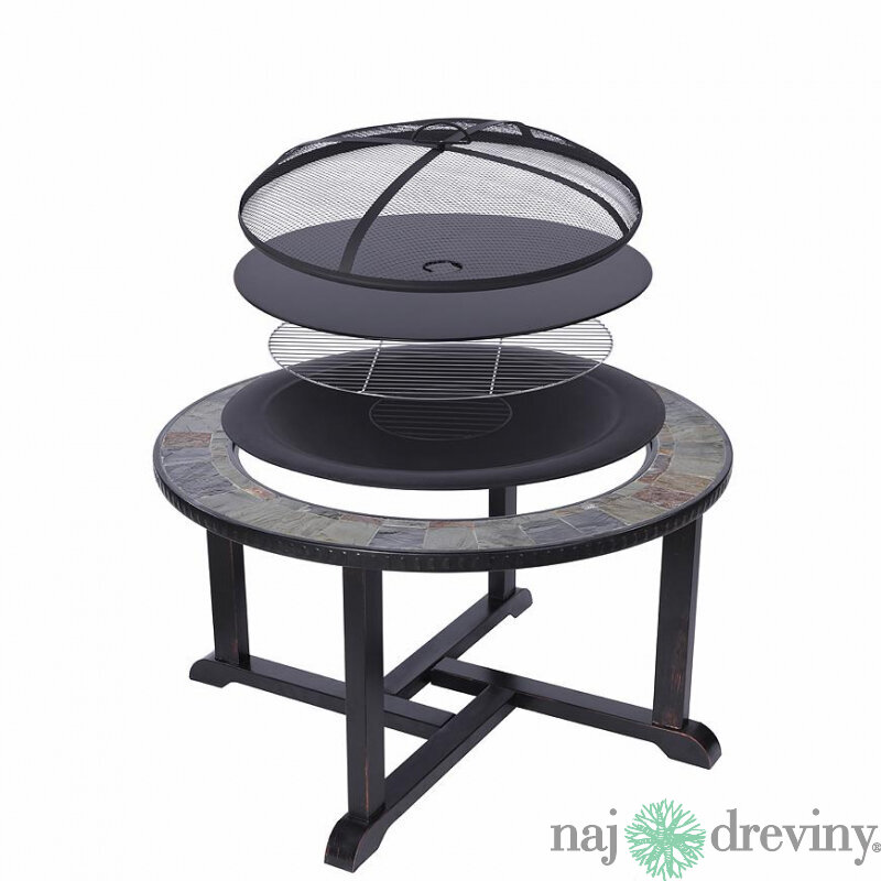 Užite si nezabudnuteľné chvíle s priateľmi a rodinou pri grilovaní s ohniskom Strend Pro. Má využitie 3v1 - ako nádoba na oheň, klasický gril a stôl. V kovovom ohnisku v stredomorskom štýle môžete opekať svoje pochúťky na dreve aj grilovacom uhlí či briketách. Po bokoch má dekoratívny dláždený odkladací priestor, ktorý poslúži aj ako stôl. Jeho súčasťou je aj kvalitný grilovací rošt o rozmere 58 cm, pomocná tyč na uhlie, 4 stoličky na sedenie a odkladací kryt, pomocou ktorého zakryjete celú grilovaciu plochu a z ohniska sa stáva plnohodnotný stôl. Celkový priemer ohniska je 105 cm, výška je 75 cm. Rozmery stoličky sú: 45x45x36 cm.