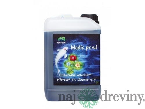 MEDIC POND je kombináciou troch širokospektrálne pôsobiacich látok, účinkuje antiparaziticky, antibakterálne a antimykoticky. Prípravok pôsobí proti baktériám spôsobujúcích napríklad infekčnú vodnateľnosť či rozklad plutiev, parazitom (Ichtyophtyrius, Ichtyobodo, Piscinoodinium, Chilodonella, Gyrodactylus i.) a plesniam (povrchové zaplesnenia rýb i.). Prípravok sa tiež používa ako prevencia proti zavlečeniu choroby pri kúpe nových rýb. Použitie: Použitie pri výskyte parazitických, bakteriálnych a mykotických ochorení jazierkových rýb: Liečebná kúra by mala trvať minimálne 9 dní v troch krokoch. - Prvý deň začnite kúru dávkou 50 ml na 1 m