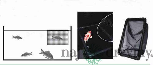Plávajúca sieť na výber a kontrolu rýb. - sieťka mikro (3mm), - rám vyrobený z pvc, - jednoduchá montáž,