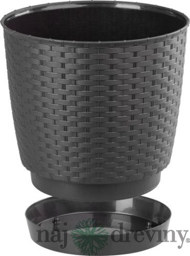 Okrúhly kvetináč s miskou svojou textúrou verne imituje prírodný ratanový výplet. Elegantný motív kvetináča možno využiť v interiéri aj v exteriéri. Dokonale sa hodí do letných záhradiek, kaviarní či reštaurácií.