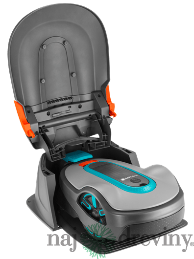 Pevný plastový domček poskytuje ochranu robotickej kosačke a nabíjacej stanici pred slnkom a dažďom. Skladacia strecha umožňuje pohodlný prístup k ovládaciemu panelu - nastavenie je vďaka tomu ľahšie.