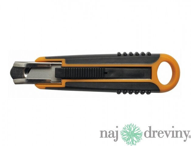 Profesionálny odlamovací nôž s praktickým zasúvaním čepieľok. Po dokončení rezu a pustení jazdca sa čepeľ automaticky zasunie do tela noža – znižuje sa tak riziko poranenia. Má pohodlný ergonomický gumový povrch rukoväte na isté držanie, praktické očko na zavesenie a špeciálny obojstranný brit v tvare lichobežníka. Je možné tiež dokúpiť náhradné čepele - Fiskars číslo 1004616. Šírka čepele: 18 mm. Záruka: 5 rokov.