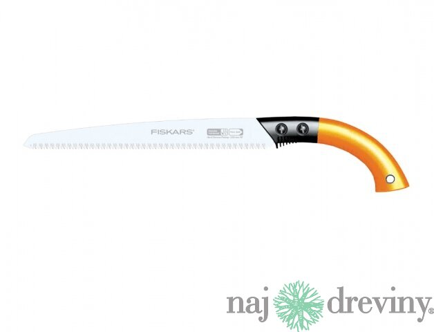 Pílka prerezávacia Fiskars je záhradná pílka s pevnou čepeľou, ktorá umožnuje ľahké rezanie dreva až do priemeru 120 mm. Má veľmi účinný tvar zubov na rýchle a jednoduché rezanie surového dreva. Držadlo je potiahnuté mäkkým povrchom a ergonomicky zahnuté. Čepeľ ide do rezu pri ťažnom pohybe. Pôvodné Fiskars číslo: 123840. Označenie: SW84