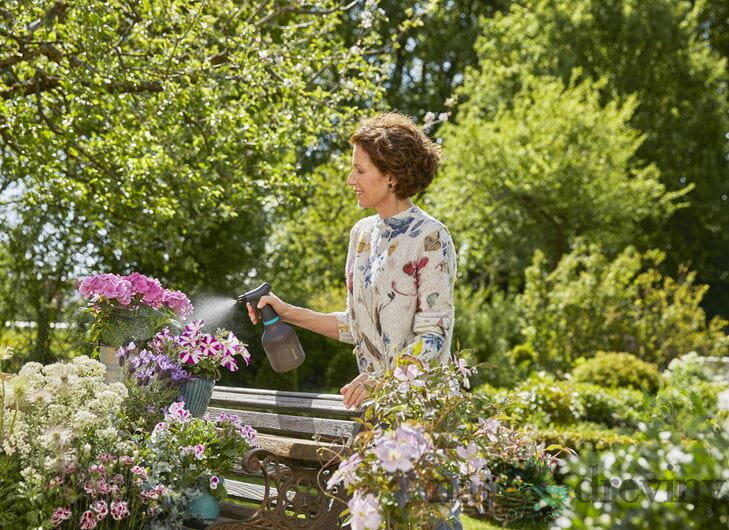 Rýchle zásobovanie vašich rastlín a kvetov vodou - s postrekovačom značky GARDENA s objemom 0,75 l to funguje znovu a znovu. Postrekovač je okamžite pripravený na používanie a je určený na zavlažovanie ako doma, tak na balkóne alebo v záhrade. Voda sa nasáva po každom stlačení spúšte, bez ohľadu na to, v akom uhle držíte postrekovač v ruke, pretože sacia hadica je vo vode vždy vďaka funkcii 360°, a teda nie je nasávaný vzduch. V kombinácii s pevnou a vysoko kvalitnou mosadznou tryskou sa u každého postreku dosiahne špičkový výkon. Dýza sa nastavuje jednoducho a pohodlne, a to buď na plný prúd alebo rozprašovacou hmlu. Hladinu vody možno ľahko zistiť cez priesvitnú nádobu. Ergonomická rukoväť umožňuje veľmi príjemné používanie, aj v prípade mokrých rúk. Veľký otvor umožňuje rýchle a jednoduché naplnenie vodou.