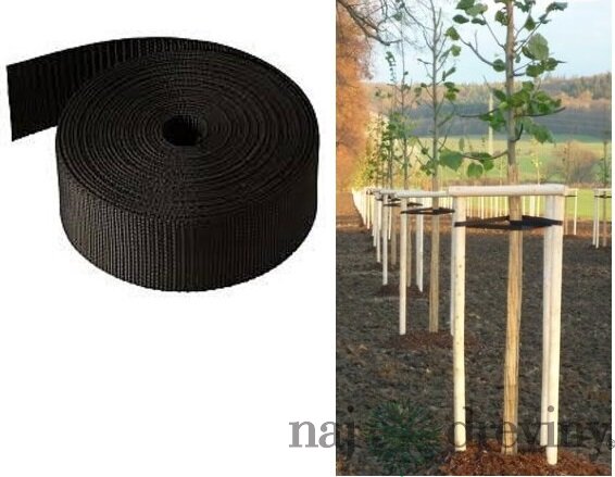 Uväzovací popruh na stromy o dĺžke 1 bežný meter a hrúbke 25 mm, pre uchytenie v prípade využitia oporných kolov. Spotreba ideálna na jeden strom je cca 3 metre.