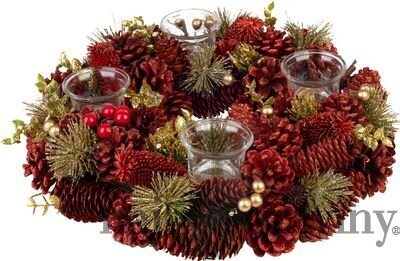 Veniec MagicHome Vianoce, prírodný, červený, adventný, 37x9 cm