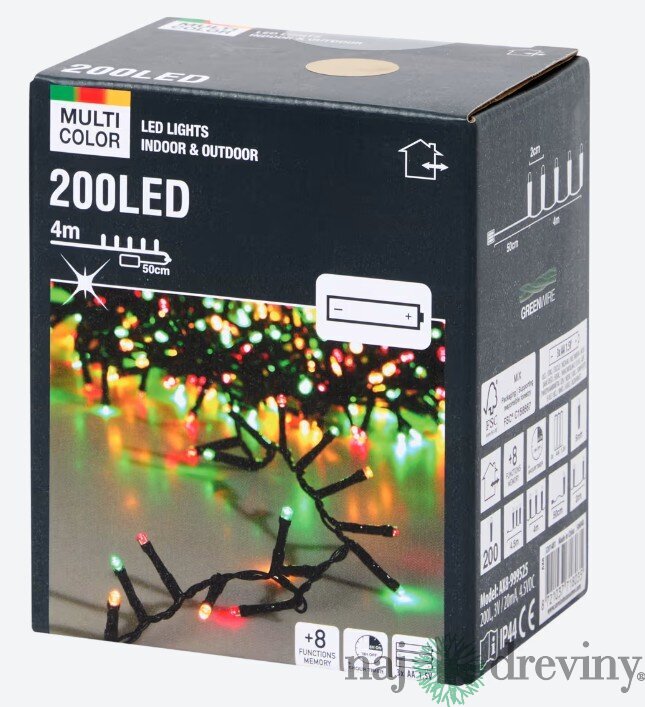 Viacfarebné vianočné osvetlenie (200 LED, 4m)
